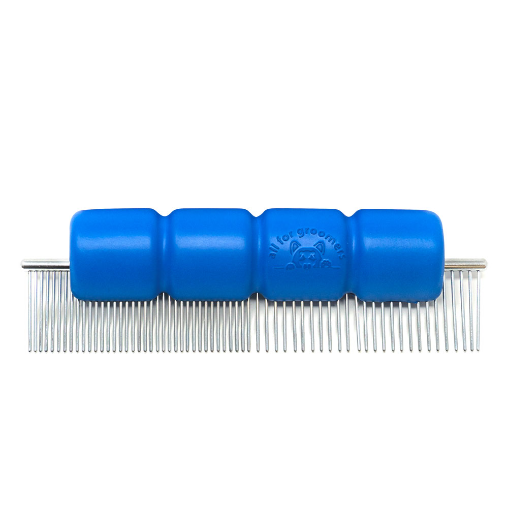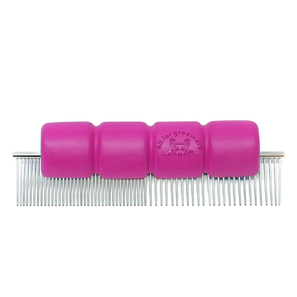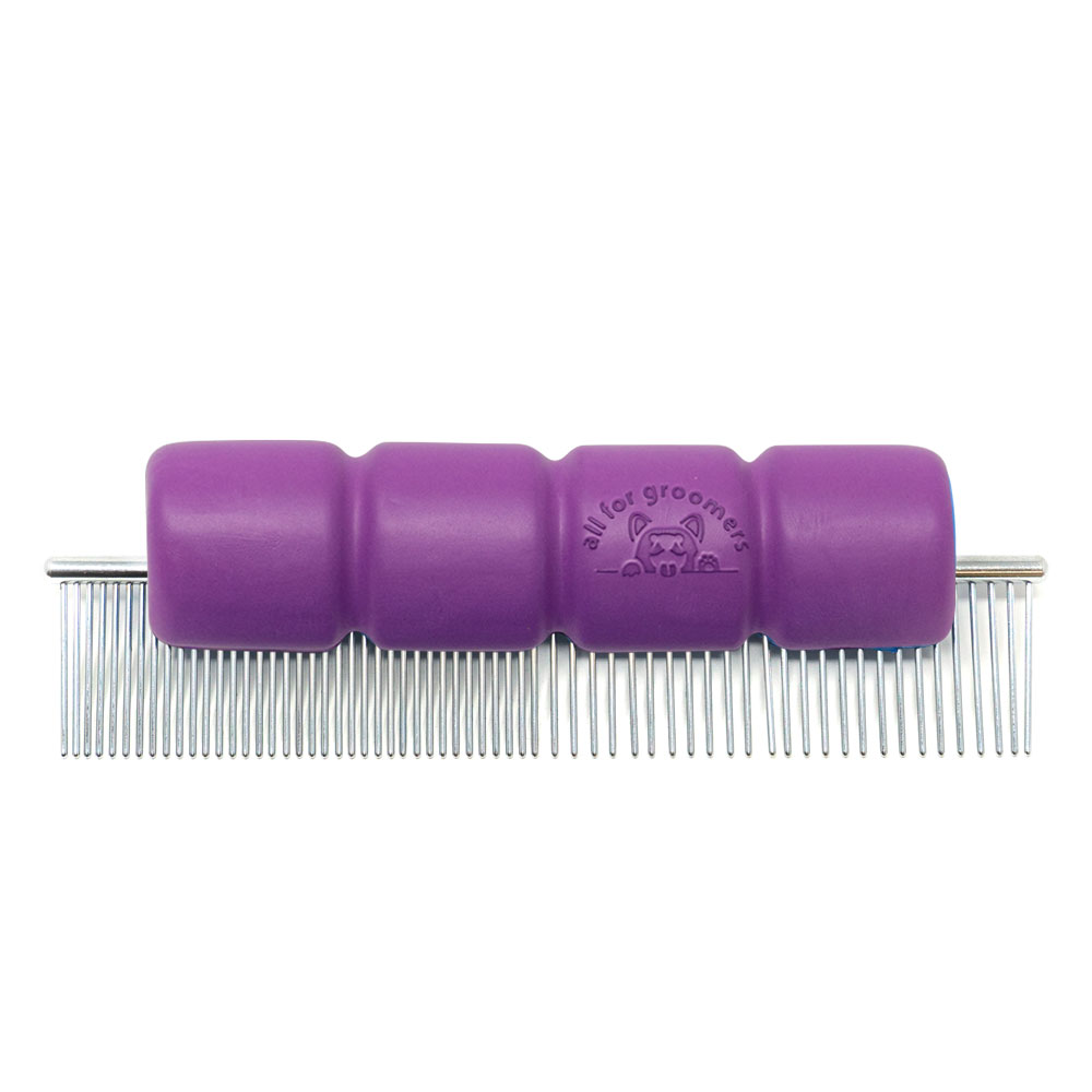 The handle is designed to fit comfortably in hand, reducing strain and fatigue during dog grooming sessions. Textured surface provides a secure grip for precise control and minimizes slippage while grooming. Made from high-quality materials for long-lasting performance. Fits most standard grooming combs, making it convenient for all groomers. Reduces hand cramps and discomfort for a more enjoyable experience. Promotes efficiency and allows for timely completion of grooming tasks.